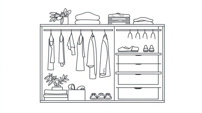 Empty wooden wardrobe with shelves and drawers in dressing room