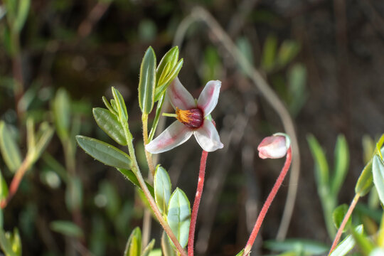 Marsh Labrador tea or wild rosemary ( Rhododendron tomentosum, Ledum palustre ) shrub growing in young pine forest forest used as herbal tea. Healthy lifestyle concept