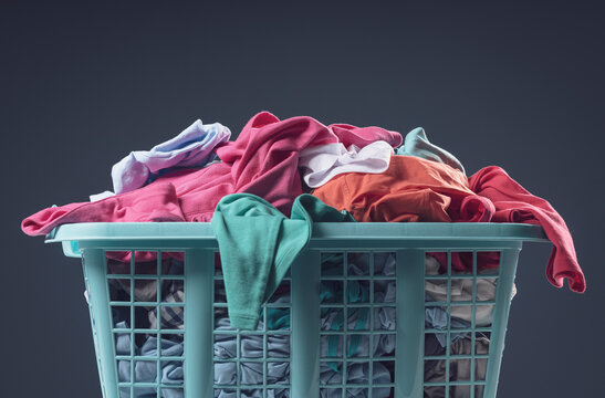 Full laundry basket with clean clothes
