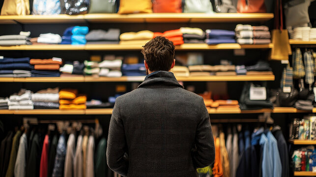 Shopping Clothing Store Interior. Modern Fashionable Shop, Clothes for Every Taste. Stylish Brand Design, Fashionable Colors, Quality Sustainable Materials. No People.