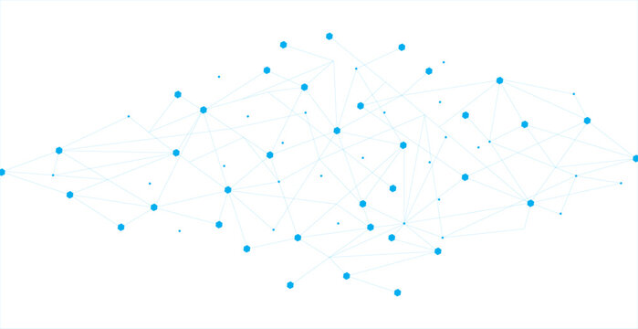 Blue network. Abstract connection on white background. Network technology background with dots and lines for desktop. Ai system background. Abstract data concept. Line background, network technology