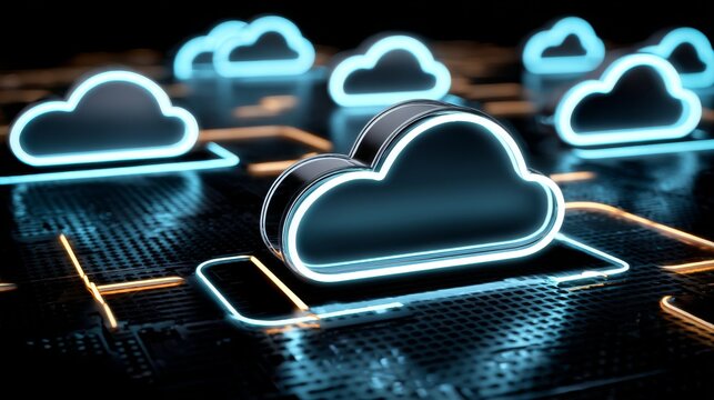 A digital cloud with glowing connections and data streams, symbolizing cloud computing and technology