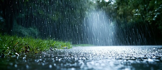 cloudburst with pouring rain from dark skies perfect for weather or gear ads