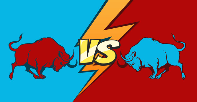 Versus screen design for game battles, sport competition and challenge. Vector template of headline with glowing blue and red VS symbols for mma or boxing match isolated on black background