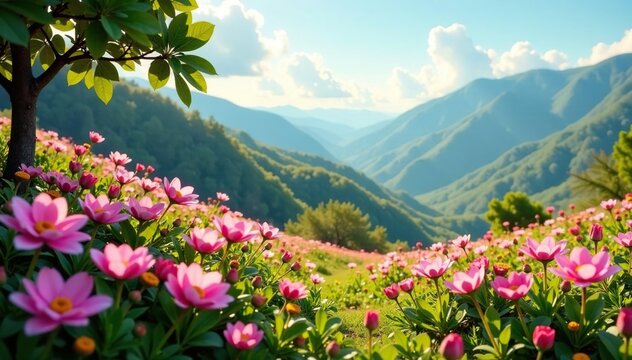 Vista a?rea de uma floresta com lindas flores,, primavera