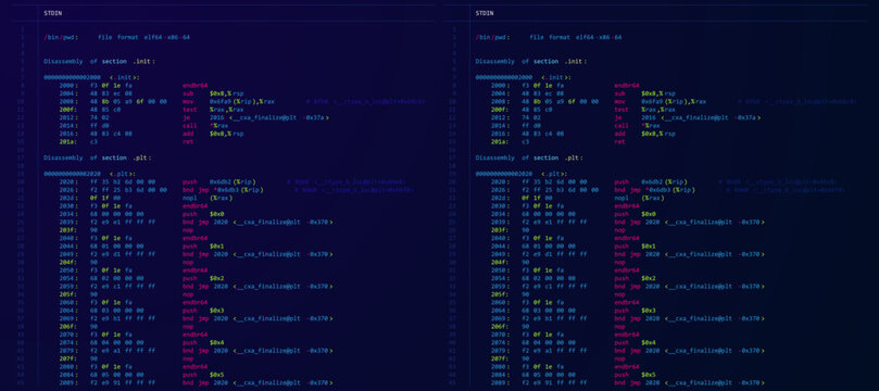 Assembly Code Programming Language. Machine Code Program Hexadecimal Code. Computer Memory. Vector Illustration. Hacking, Cryptography, Malware, Reverse Engineering, Data Analysis Backdrop.