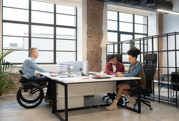 A lot of people cheering in a co working space, success at work, concept modern and young business