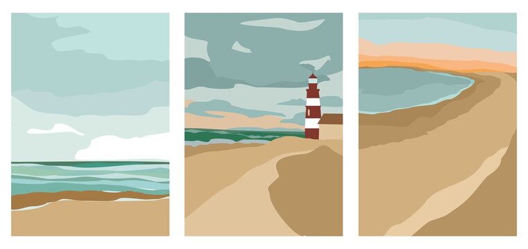 Vector illustration of a beach and a sea coast landscape. Creative summer banner or landing page for tour operator or travel agency. Summer theme background.