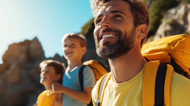 Exploring coastal cliffs with family on a sunny beach hike