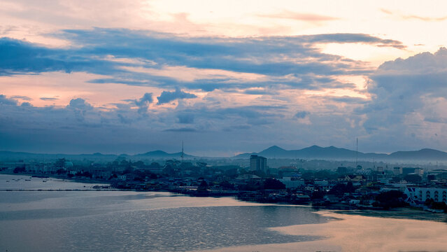 Captivating Lioness Portrait at Sunset on Rocky Shoreline Silhouette Overlooking the Sea Serenity
