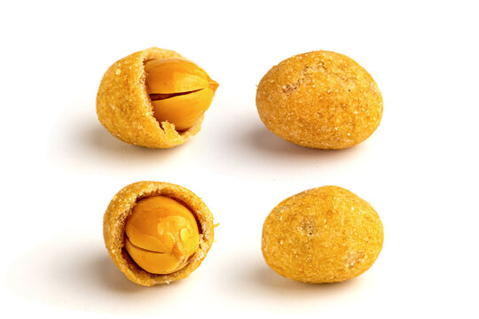 Roasted peanuts coconut cream flavour coated isolated on white background