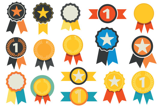 Collection of colorful award ribbons vector set isolated on white background - Vector illustration
