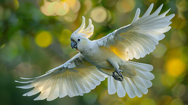Beautiful sulphur-crested cockatoo showing off its yellow crest and wings