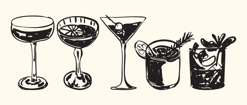 cocktail drink handdrawn illustration engraving