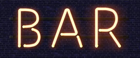 Retro neon sign with the word bar. Vintage electric symbol. Burning a pointer to a black wall in a club, bar or cafe. Design element for your ad, signs, posters, banners. 3d illustration.