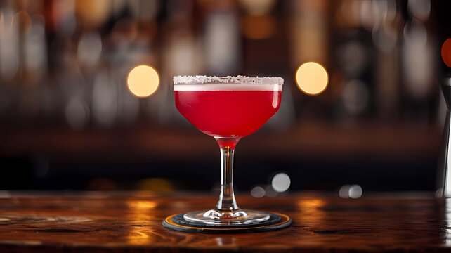 Vibrant cocktail held against bar backdrop for nightlife promotion