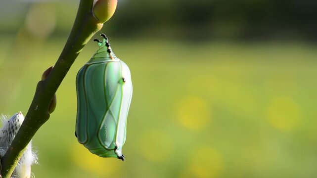 Amazing moment ,Monarch Butterfly, pupae and cocoons are suspended. Concept transformation of Butterfly