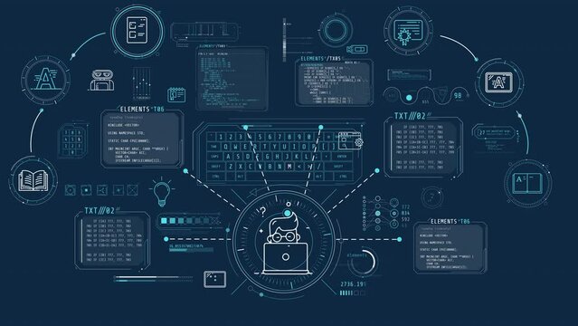 classic coding programming language overlay with black background. Modern digital writing code animation