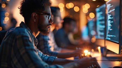 Programmers participating in coding challenges, showcasing their problem-solving prowess and competitive spirit. Copy Space