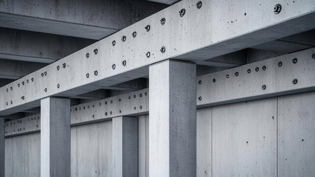 Material science durability concept. Composite material beams withstanding seismic vibrations, durable structural engineering, innovative materials