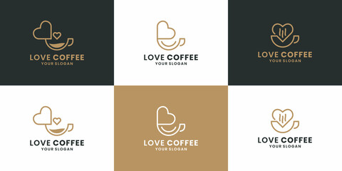 set of creative love coffee, coffee shop, logo design vector