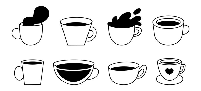 Vector logo and branding design elements, coffee cups, concept simple linear illustration for cafe, menu, banner, print, minimalistic outline icon
