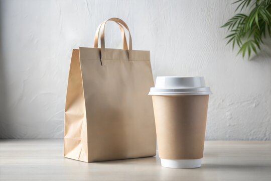 Coffee Bag Packaging Mockup with coffee cup in Café Setting