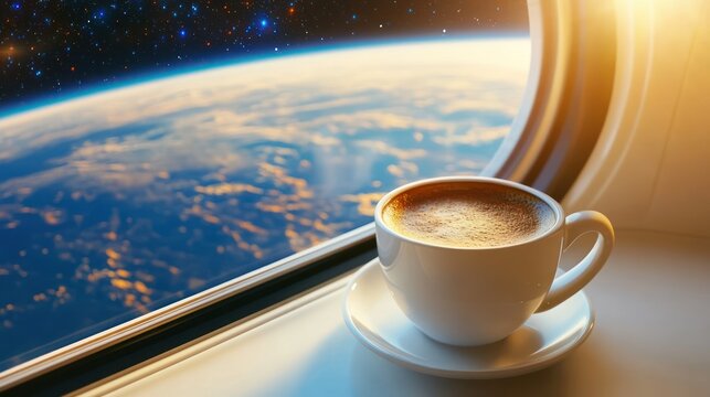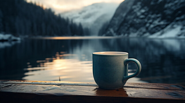 Coffee with a landscape: Capture a cup of coffee against the background of a picturesque landscape, such as a mountain, forest or lake.