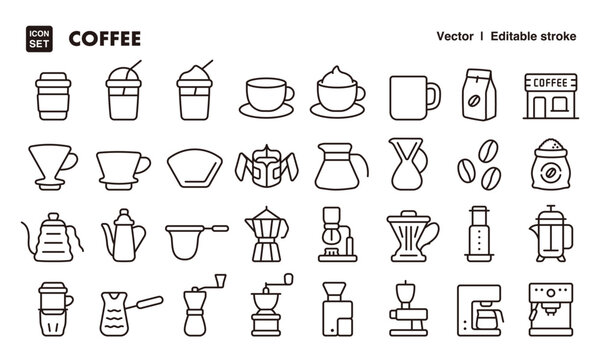 Coffee and coffee goods line icon set. Vector editable stroke icon.