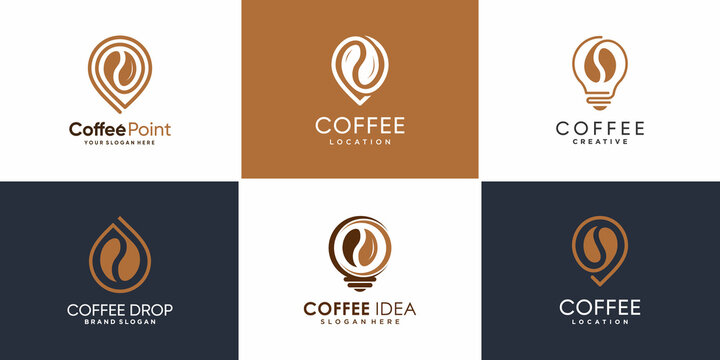 Set of coffee logo collection with different elements, pin, drop, idea style Premium Vector