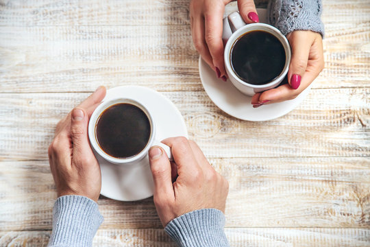 Couple lovers talking in cafe for a cup coffee. Man and woman sitting in a cafe