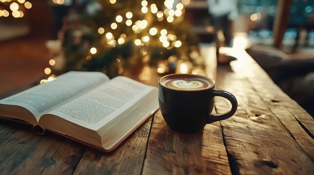 Cozy winter reading session rustic home coffee and book warm atmosphere close-up view tranquil moments