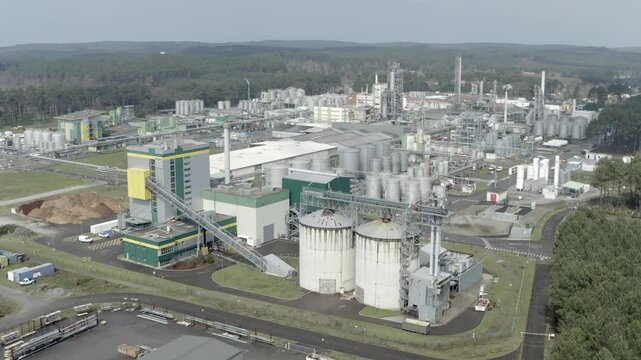 DRT sustainable cogeneration plant for green energy. Vielle-Saint-Girons, France. Aerial drone
