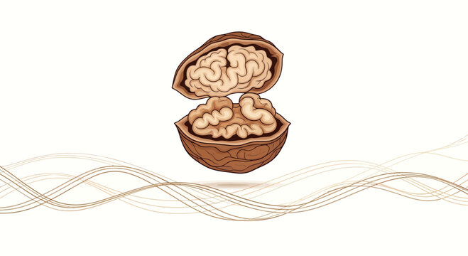 Conceptual Illustration Depicting a Walnut Representing the Human Brain and Cognitive Abilities