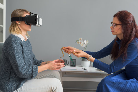 Therapist treating her female patient reptile phobia