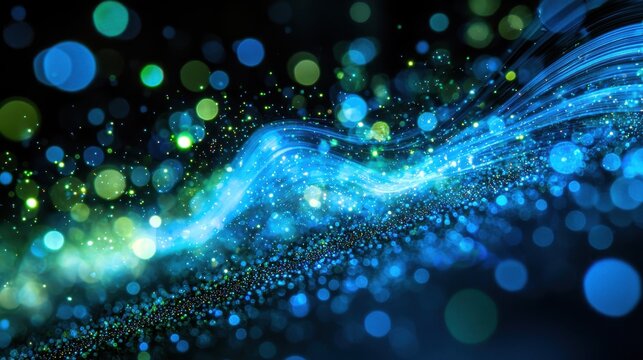 Laser speckle correlation flowing wave patterns coherent light interference brilliant blue green bokeh spots streaming particle trails abstract optical phenomena macro