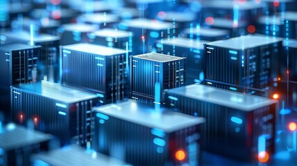 Freight containers being synchronized by an organized team, highlighting precise logistics and coordination, field of dept deep odject, all cover focus text, for spacecopy