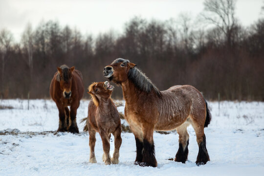 Belgian Draft Horse in winter field