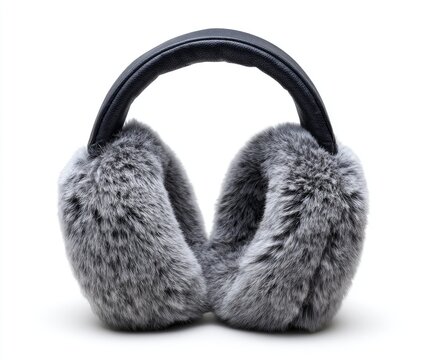 Fuzzy, brown ear muffs with a plastic band on a white background
