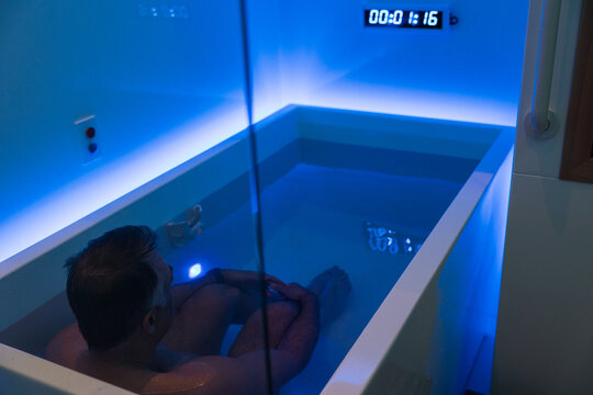 Man sitting in cold therapy spa bath