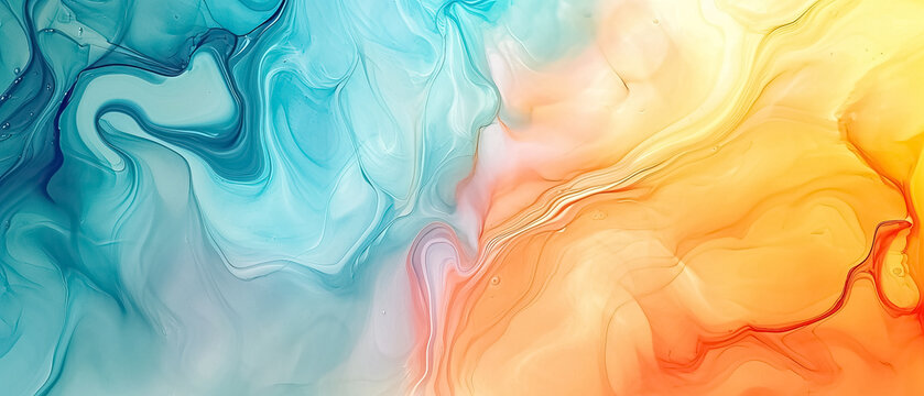 Abstract background with color tone cold and hot (yellow and blue)liquid spiral line, feel is water liquid color texture, background wallpaper ultra wide 21:9