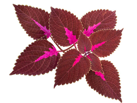 Coleus Blume Plectranthus scutellarioides Coleus blumeii plant, a species of the genus Coleus Burgundy-green leaf coleus close-up.