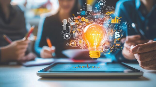 a digital brainstorming app open on a tablet, symbolizing the modern approach to collaborative ideation