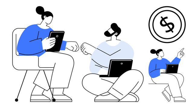 collaborative workspace with coffee cups, laptops, and notebooks, showcasing productive atmosphere. People are engaged in discussions and work, creating vibrant environment