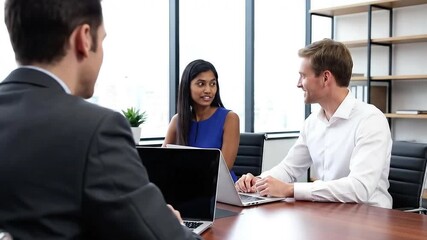 Corporate recruitment team discussion in professional setting
