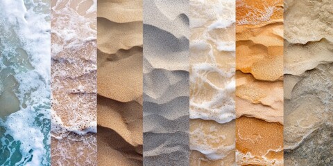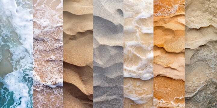 Collage showcases diverse beach textures with sand and water patterns