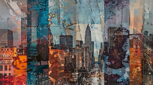 Minimalistic scrapbook collage showcasing urban geometric patterns and vibrant colors