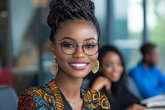 Public speaking training in seminar : African American business man leader in seminar, speaking on business training with group of diverse people company employees in meeting room