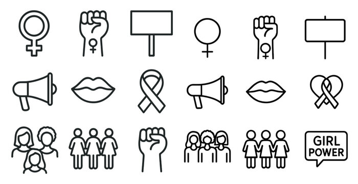 Feminist symbols and unity icons for empowerment and equality