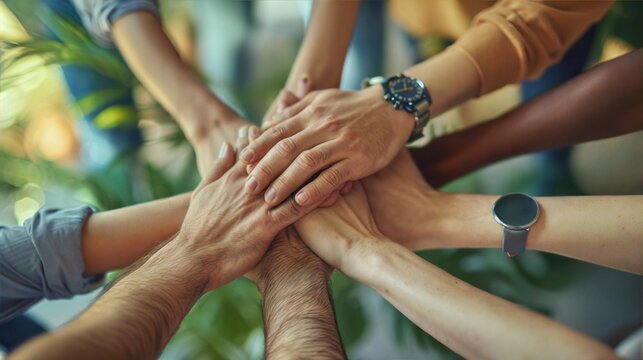 Diverse Group of Hands Holding Tools in Unity and Collaboration for Teamwork and Solidarity Concept